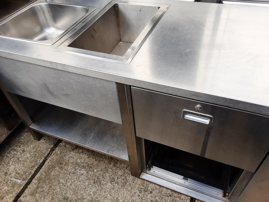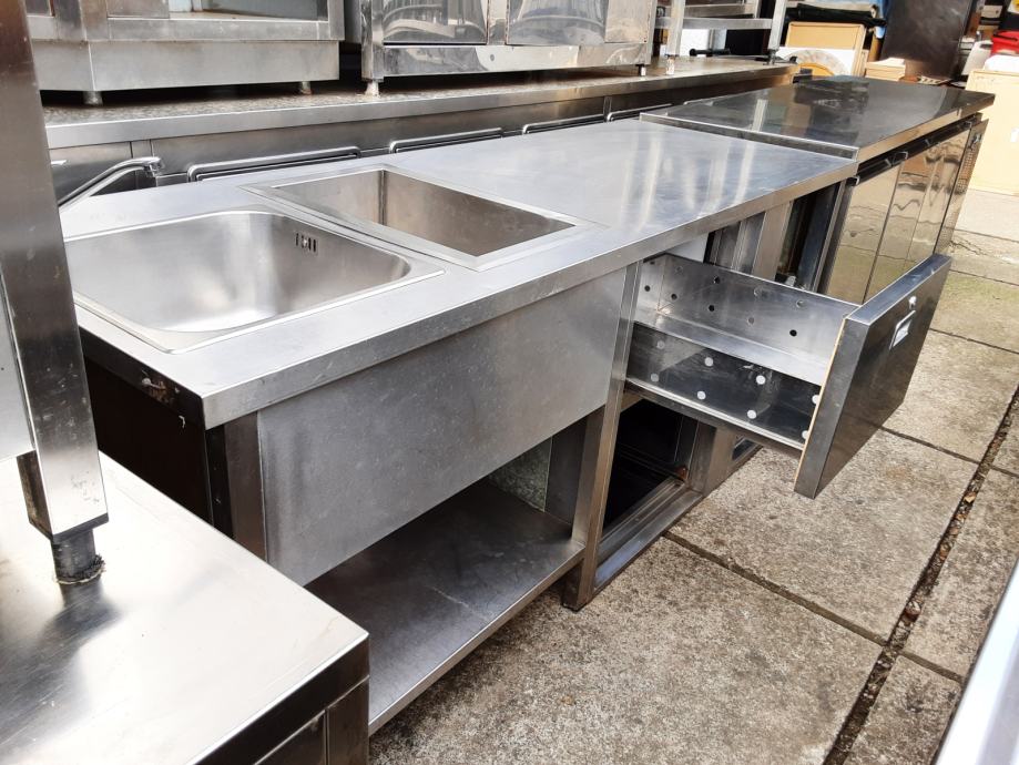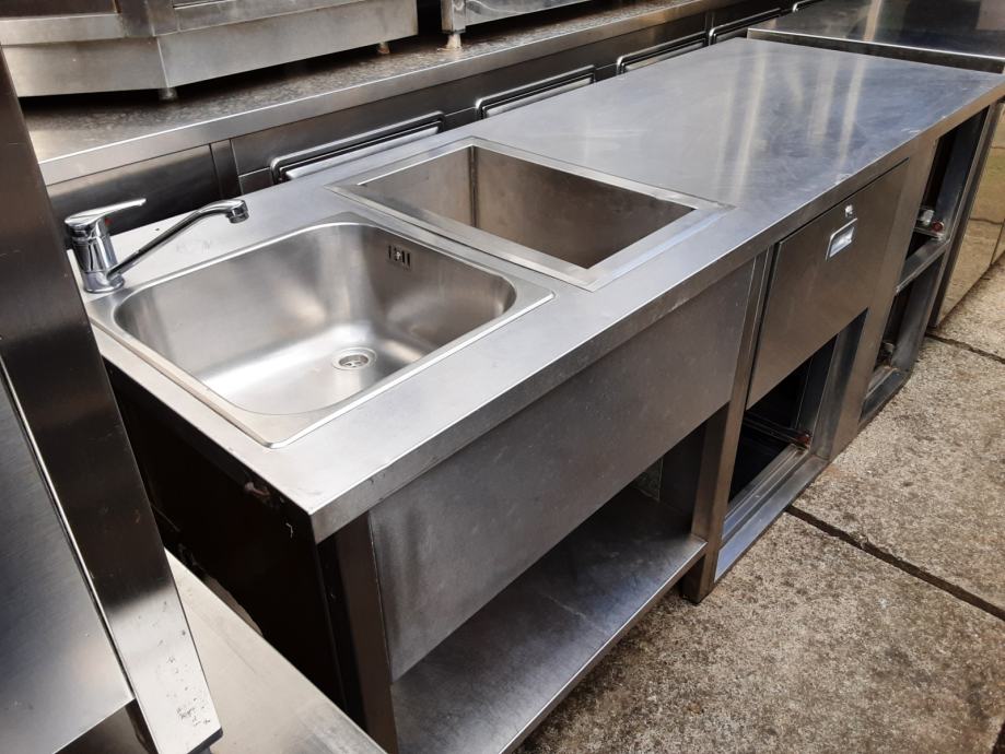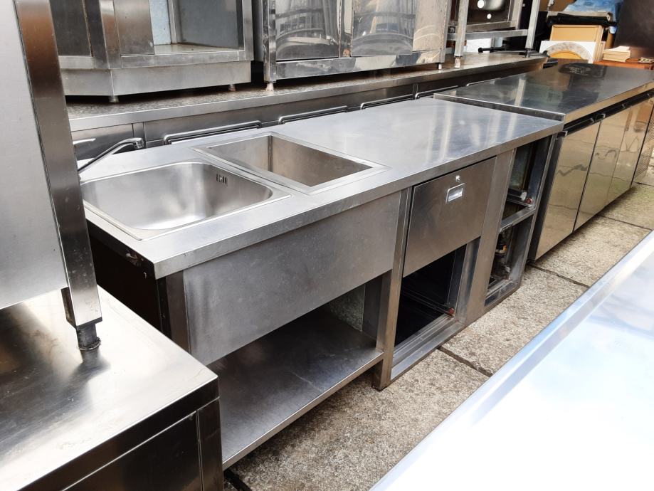 Inox stol iz naslova u dobrom I očuvanom stanju ima rashladni sistem 2 ladice I 1 rashladno korito za boce ili slično i 1 korito sudoper sa pipom