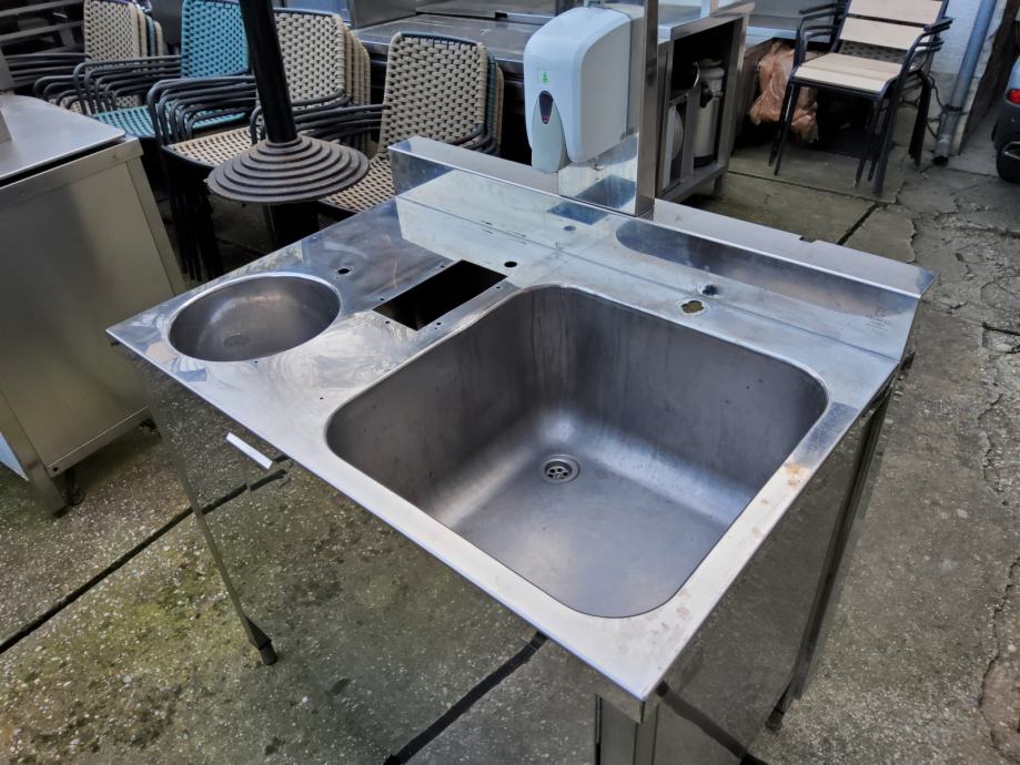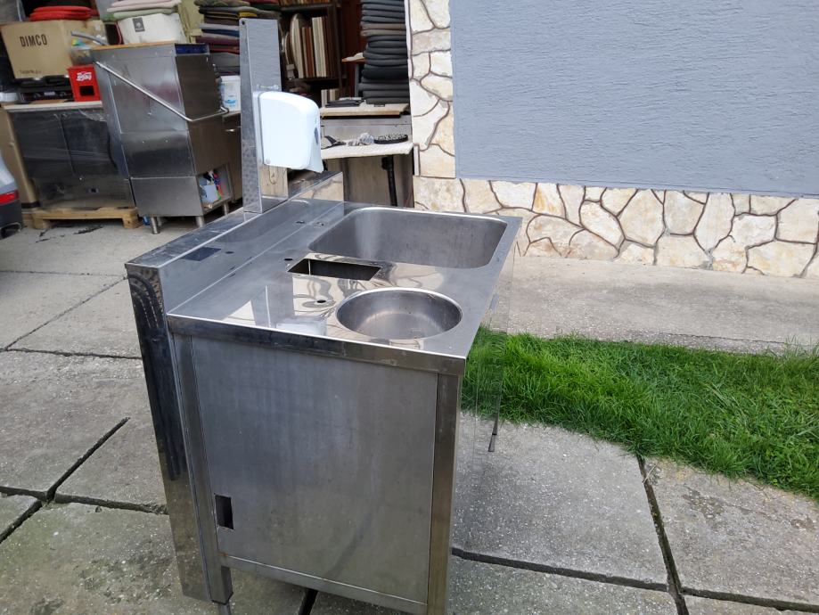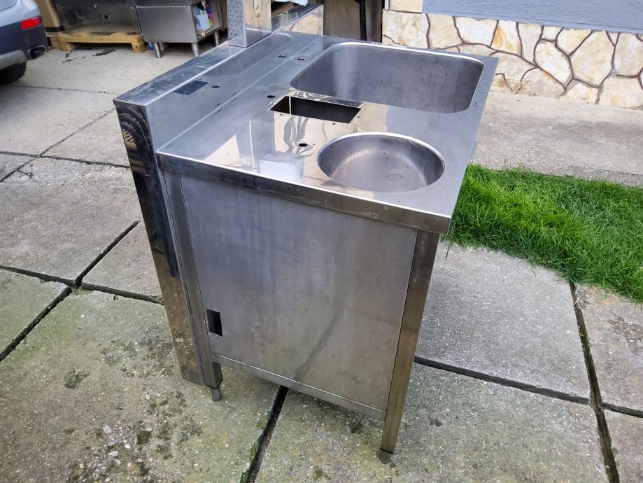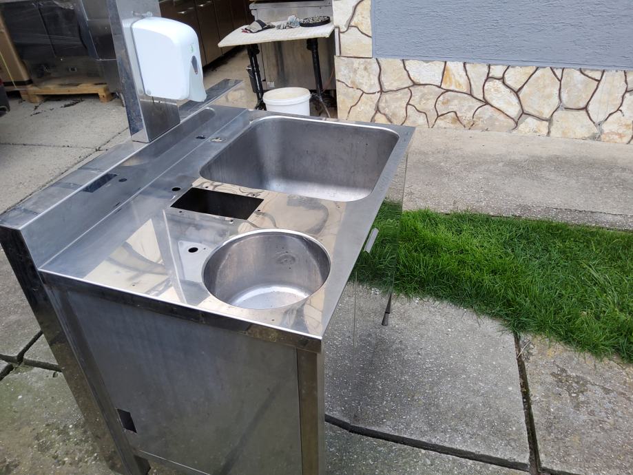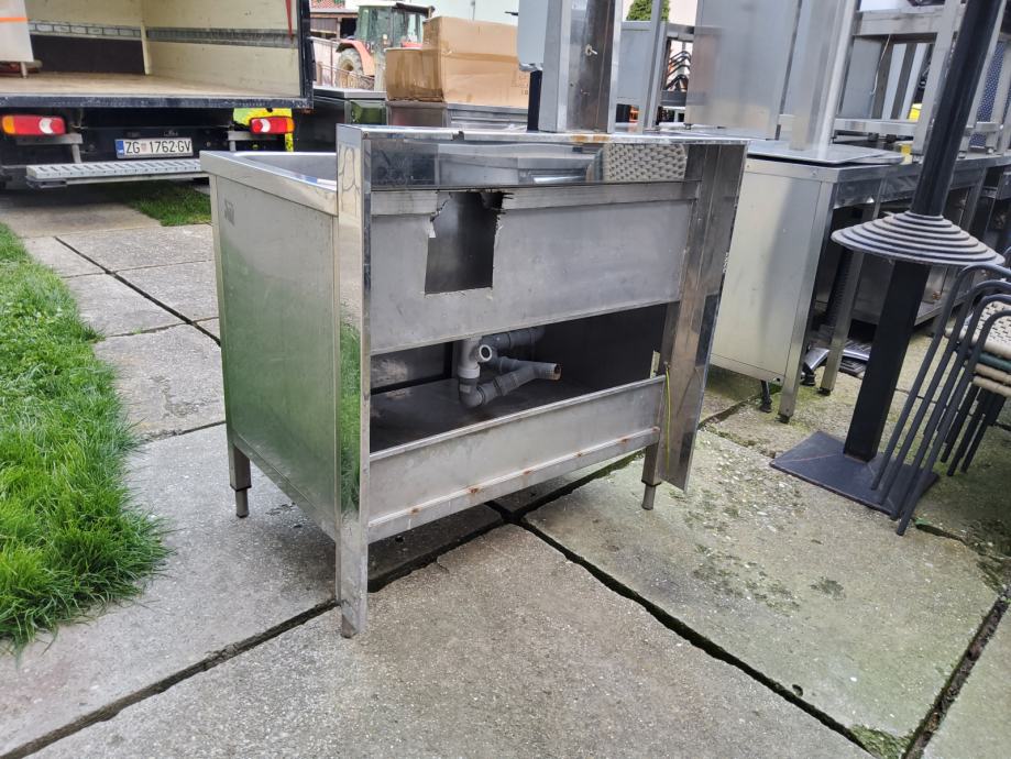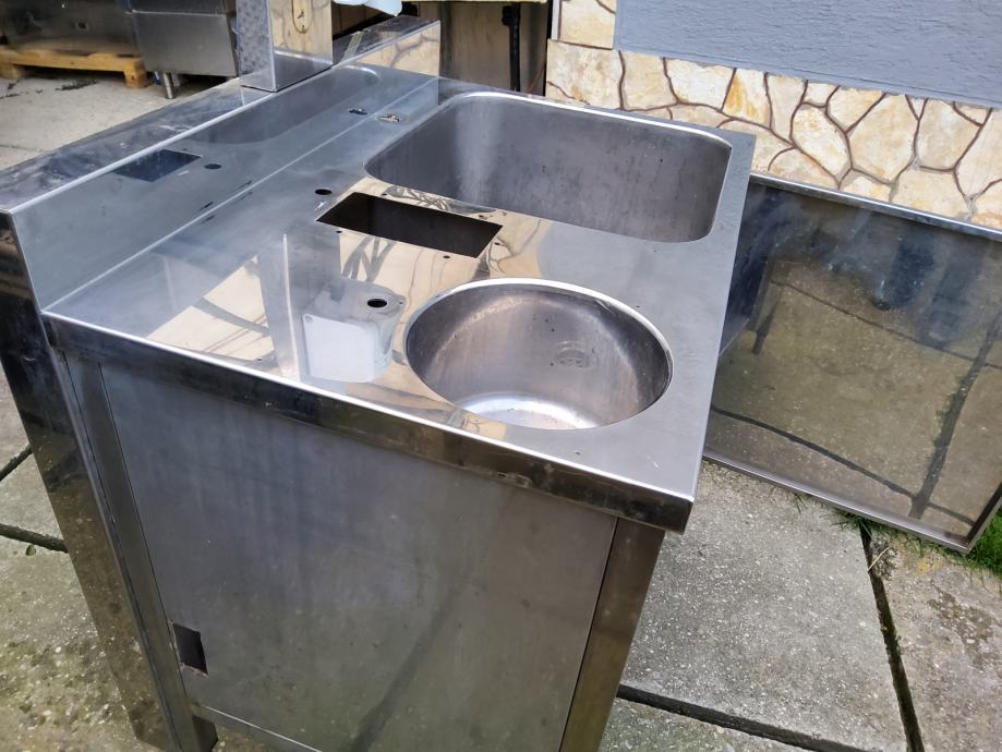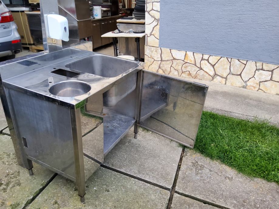 Inox samostoječi sudoper specifične izvedbe kao što vidite na slikama sa velikim sudoper-koritom 50x50 dubina 30 cm i jednim malim okruglim te sa nosačem za tekuči sapun Sudoper je u jako dobrom stanju vrhunski proizvod i jako kvalitetna izrada kupljeno u švicarskoj hitno prodajem za 470 eura Ako se nekom uklapa u njegovo poslovanje neće pogriješiti stvarno jedinstveni proizvod molim poziv na broj 091 8886 926