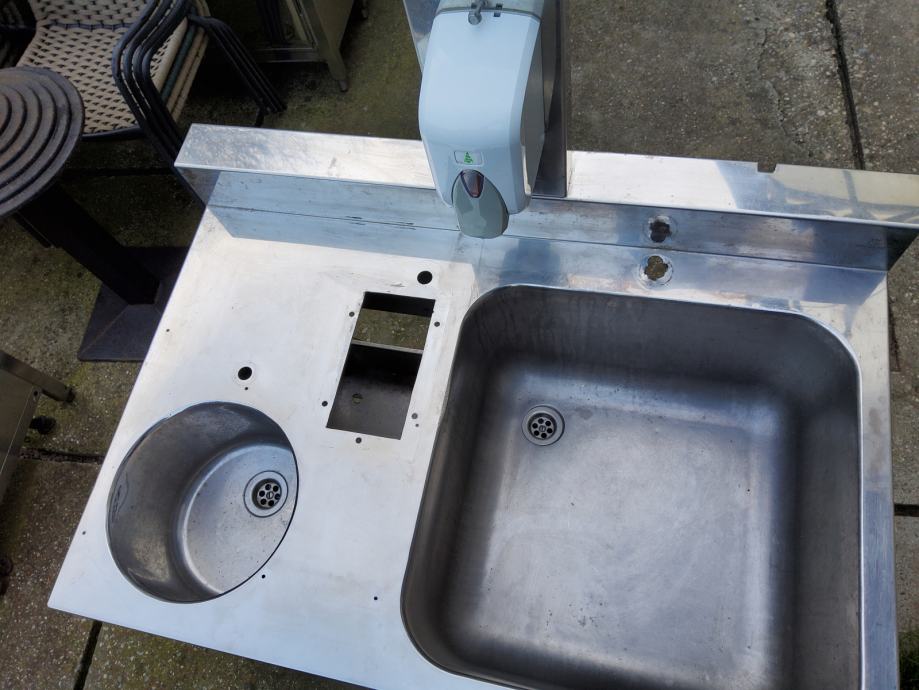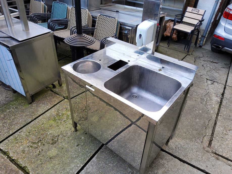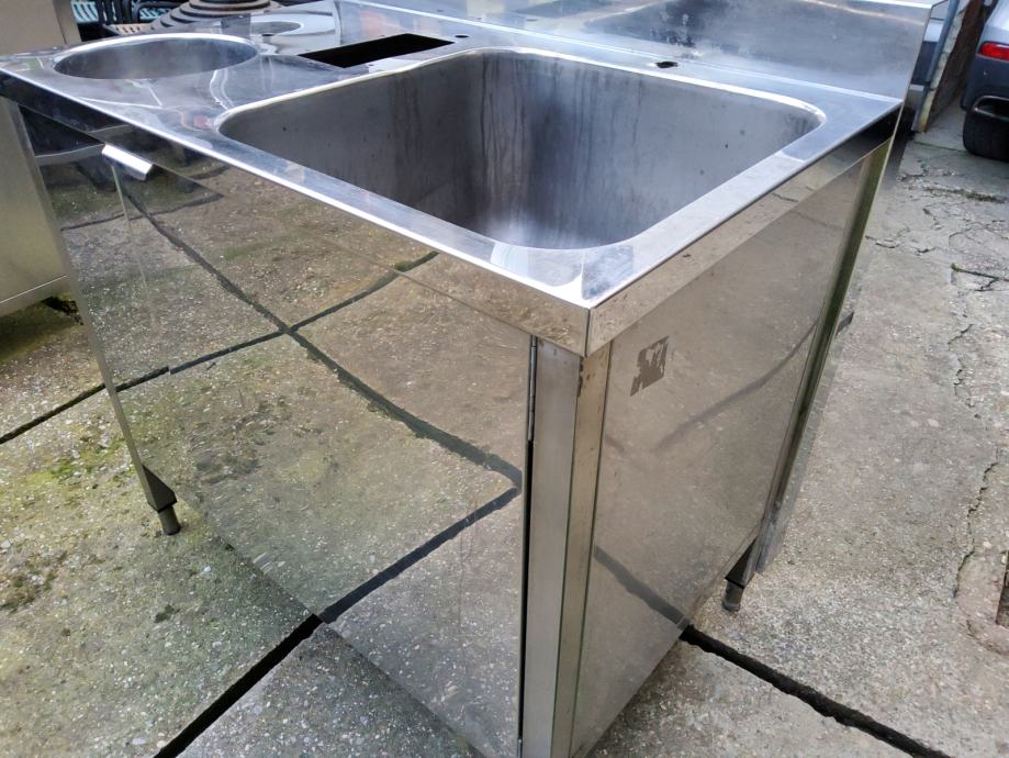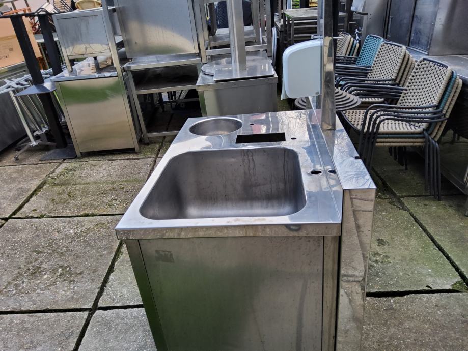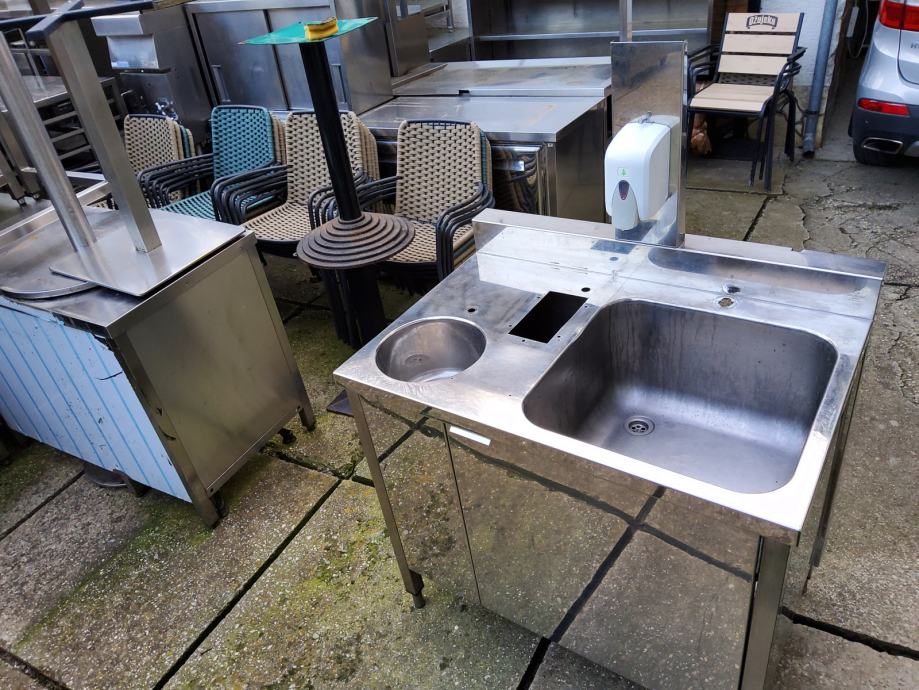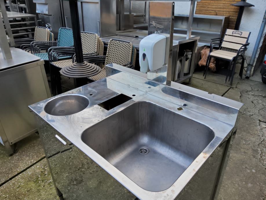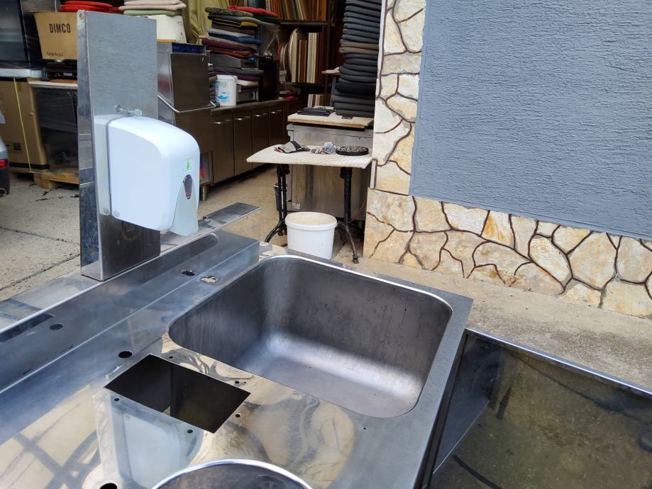 Inox samostoječi sudoper specifične izvedbe kao što vidite na slikama sa velikim sudoper-koritom 50x50 dubina 30 cm i jednim malim okruglim te sa nosačem za tekuči sapun Sudoper je u jako dobrom stanju vrhunski proizvod i jako kvalitetna izrada kupljeno u švicarskoj hitno prodajem za 470 eura Ako se nekom uklapa u njegovo poslovanje neće pogriješiti stvarno jedinstveni proizvod molim poziv na broj 091 8886 926