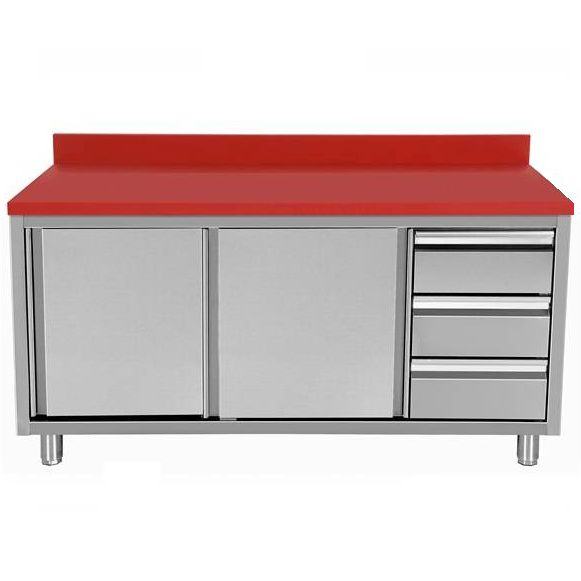 Inox stol zatvoreni sa ladicama i vratima - sa koterm radnom pločom