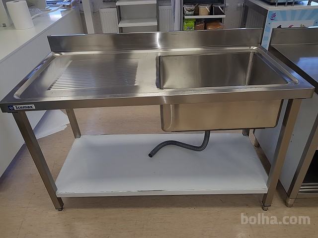 -INOX sudoper: 1400x700x950 (1 x desni sudoper, dimenzija 500x500x250-dubina + o0 polica za sušenje lijevo) sa zidnom klapnom protiv ulijetanja, ugrađena odvodna cijev,
