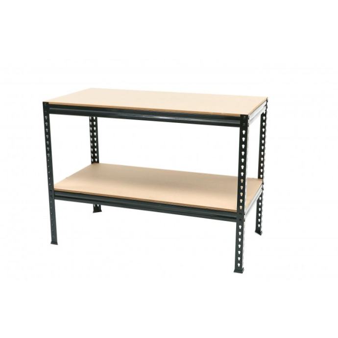 prekrasan stalak s policom za garažu ili radionicu stalak se jednostavno sastavlja zahvaljujući jedinstvenom patentiranom sustavu montažene zahtijeva maticu, vijak ili alat, samo čekić. 2 police (120 x 60 cm) mogu se pričvrstiti na željenu visinu dvije police pružaju još više prostora za pohranu vašeg alatastalak je vrlo stabilan zbog robusne metalne baze stalak ima gumene noge na dnu što sprječava ogrebotine i druga oštećenja vašeg podaTehnički podaci:ukupne dimenzije (DxŠxV): 122 x 61 x 90 cmdimenzije radne ploče (DxŠ): 120 x 60 cmdebljina radne ploče: 12 mmvisina donjeg vrha: 38 cmvisina gornje ploče: 90 cmtežina: 21 kgmaksimalno opterećenje: 100 kgdimenzije pakiranja (DxŠxV): 120 x 60 x 9 cm]]>