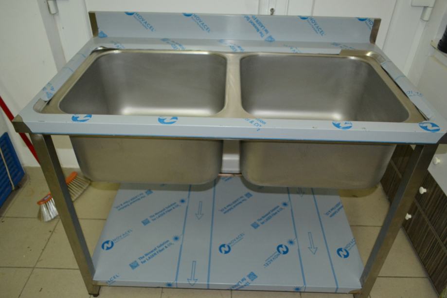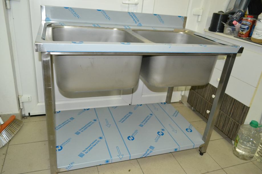SNIŽENOSudoper 1200x700+polica dolje,zaštita zida,2 korita 500x500x320