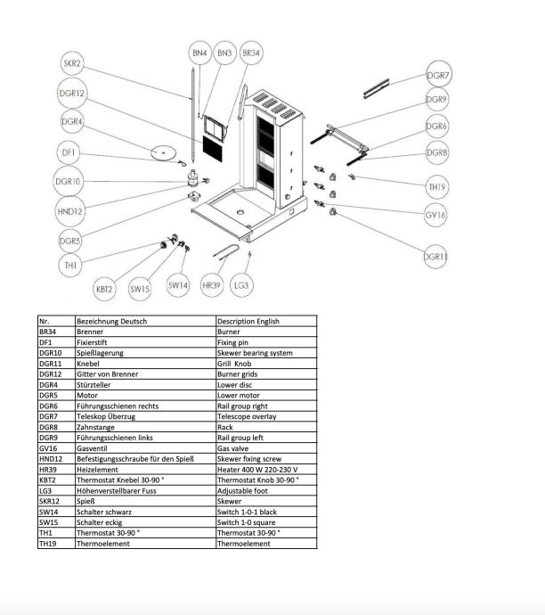 Döner / Gyros plinski roštilj – 3 plamenika, 40 kg mesa, INOX – NOVO!