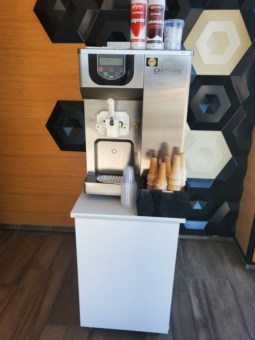 Prodajem Aparat za sladoled u odličnom stanju, vrlo malo korišten, sve na aparatu je u funkciji. Uz aparat ide i prvo punjenje sladoleda. Aparat proizvodi jedan okus sladoleda. Aparat se nalazi na postolju koje dolazi uz aparat, u postolju ima dovoljno mjesta za sve potrebno za rad aparata. Cijena je fiksna + pdv!