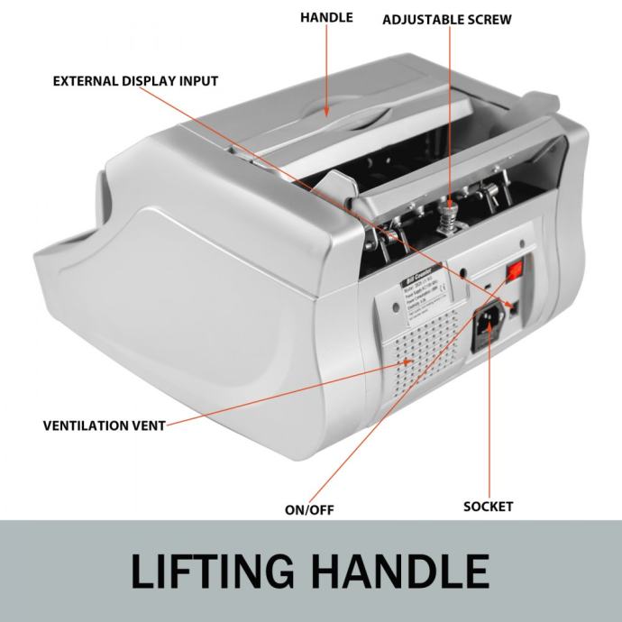 -Ručka za podizanje:Dizajniran s prijenosnom ručkom na vrhu, a ručka se može sakriti kada se ne koristi, vrlo praktično. S razumnom strukturom, stroj za brojanje je prikladan za nošenje.
