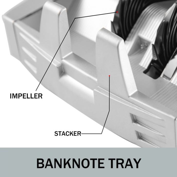 -Ladica za novčanice:Infracrvena tehnika omogućuje automatsko zaustavljanje stroja i brisanje nule. Premium impeler čini proces besprijekornim uz glatko brojanje.