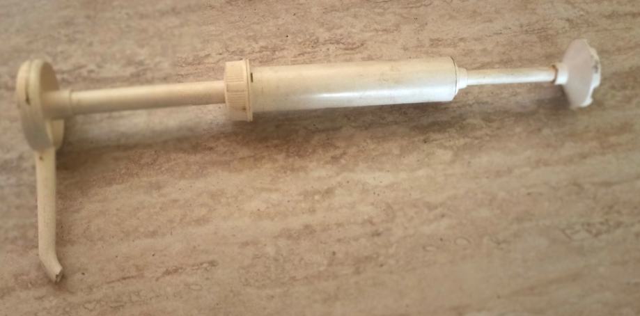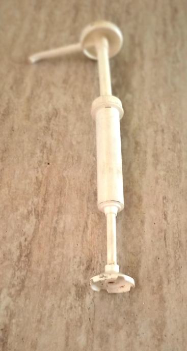 Dozator sa čeličnom oprugom. Pogodno za ugostitelje za doziranje marmelada, majoneze, kečapa senfa i sl. iz velikih karnistera. Od čvrste i otporne plastike, jednom korišten, kao novo.