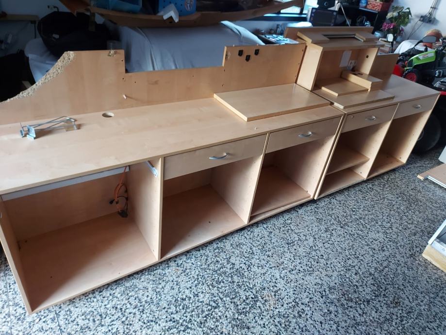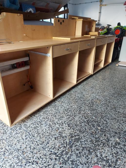 Prodajem drveni pult s dva viseća ormara, dužine 3.5 metra, cijena: 180 eur
