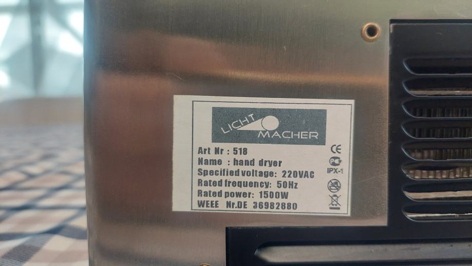 Električno sušilo, sušilica za ruke, Hand dryer Licht Macher. Novo, nekorišteno. 1500 W. Senzorsko uključivanje i gašenje.
