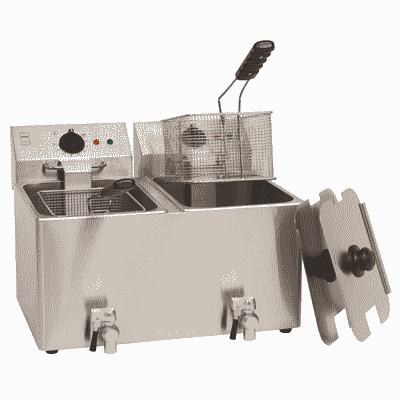 Kapacitet 8+8 L, (min 4+4 L), snaga 2×3500 W, EGO termostat 0°do 190°C, nehrđajući čelik AISI-304- 18/10, min-max oznake za ulje, dodatna zaštita termostata, 650×570×485 mm, temp. topljenja 30˚C, radni napon - 220-240V, 50/60 Hz, mogu se upotrebljavati pojedinačno ili kombinirano. Temperature se mogu namjestiti međusobno neovisno za svaku fritezu, ako je temperatura ulja niža od namještene vrijednosti, uređaj se automatski uključuje, čim temperatura ulja postigne namještenu vrijednost, uređaj se automatski isključuje, tako se temperatura konstantno održava na namještenoj vrijednosti, uređaj je opremljen sklopkom za zaštitu od pregrijavanja.