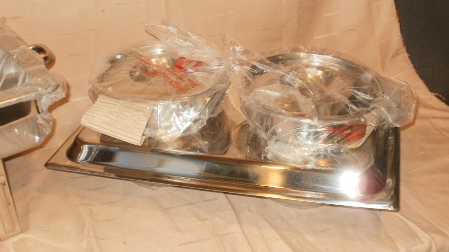 GRIJAČ HRANE SUNNEX JE POTPUNO NOV I NEUPOTREBLJAVAN. POSUDA ZA PODGRIJAVANJE HRANE. POSUDA ZA GRIJANJE HRANE. NA INTERNETU MU JE CIJENA 348 EURA, JEDNOSTAVNO PROVJERITE. SUNNEX CHAFING DISH SET 18/10 STAINLESS STEEL. SUNNEX CHAFING DISH ROSTFREIER EDEL STAHL 18/10. NIKAKVO SLANJE. CIJENA FIKSNA.
