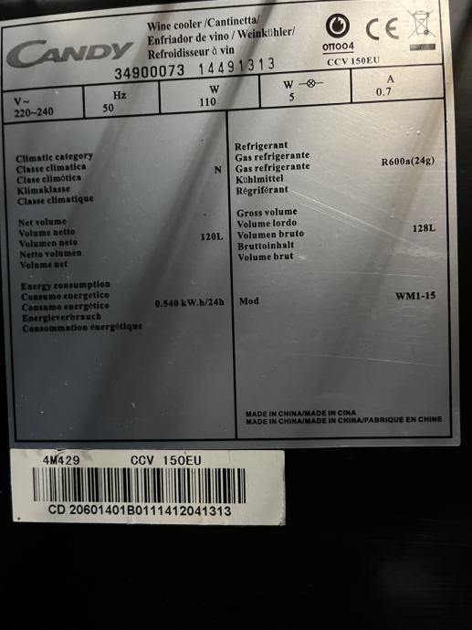 Prodajem hladnjak za vino Candy u jako dobrom i ispravnom stanju dimenzije
