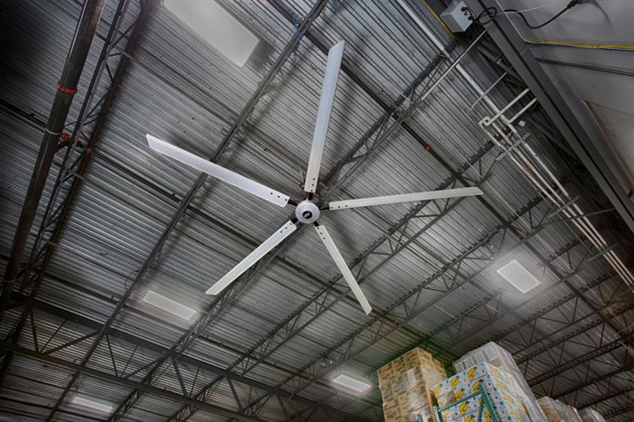 EHS serija ventilatora velikog protoka i male brzine (High Volume Low Speed – HVLS) dizajnirana je za ugradnju na visokim stropovima kako bi se zrak usmjerio prema podu.