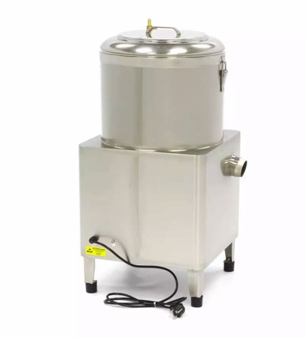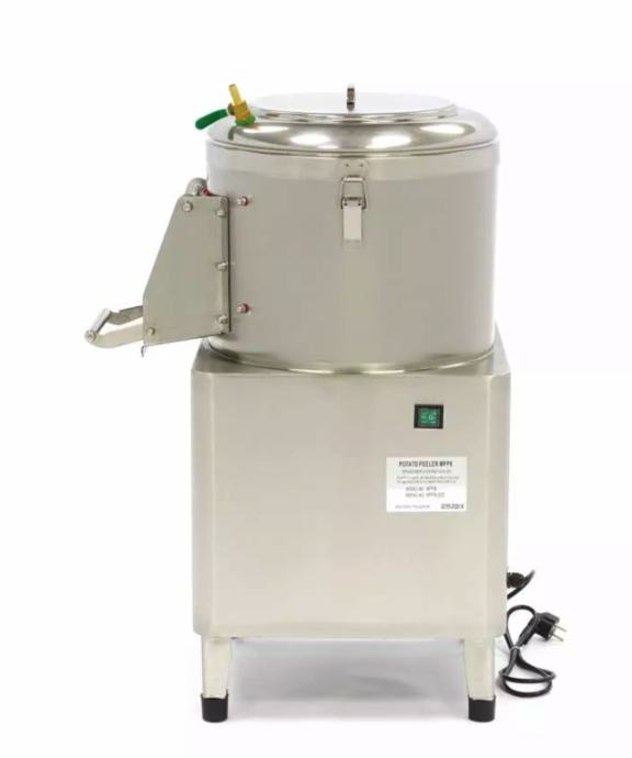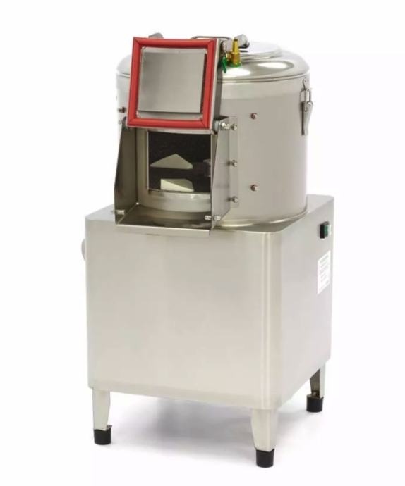 Stroj za guljenje krumpira ima izdržljivo kućište od nehrđajućeg čelika i obloženu unutrašnjost koja osigurava higijenu i sigurnost.