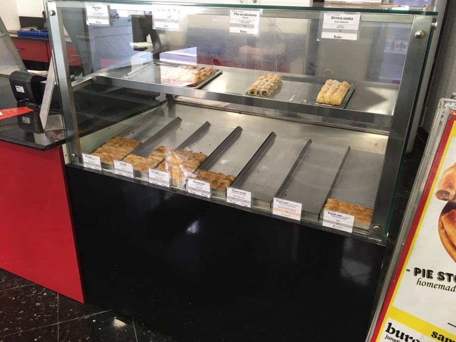 PRODAJEM KOMPLETNU UGOSTITELJSKU OPREMU ZA OBJEKT BRZE PREHRANE "BAŠ BUREK" KOJI SE SASTOJI OD VIŠE RASHLADNIH UREĐAJA ZA SKLADIŠTENJE I ODMRZAVANJE ROBE (5 KOMADA), KONVEKTOMAT PEĆ "RATIONAL", SUDOPER, RADNIH PULTEVA (3 KOMADA), PRODAJNI PULT (2 KOMADA), DVA TOPLA PULTA ZA IZLAGANJE HRANE, FISKALNA BLAGAJNA I OSTALOG SITNOG INVENTARA I POLICA ZA SKLADIŠTE.