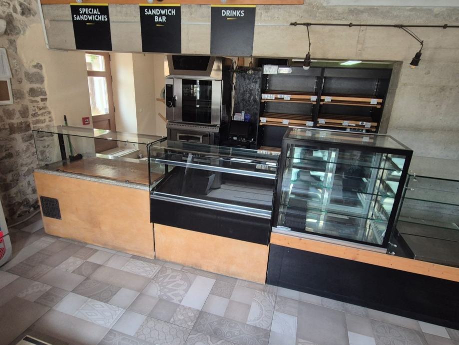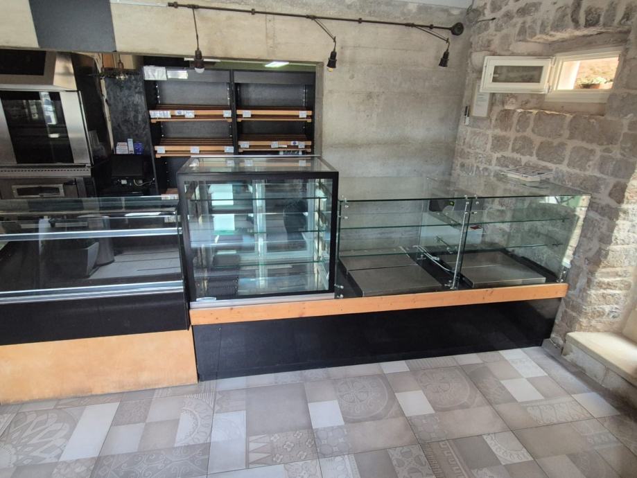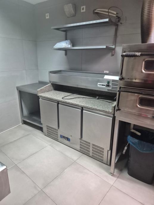 Prodajem kompletnu opremu za pizzeriju i ugostiteljski objekt, uključujući vitrine za kolače i rashladno-izložbene vitrine. U ponudi su staklene izložbene vitrine različitih dimenzija, rashladni radni stol s roštiljem od granita te pećnice za pizzu. Sve je staro par godina, vrlo uščuvano i potječe iz radnog objekta.