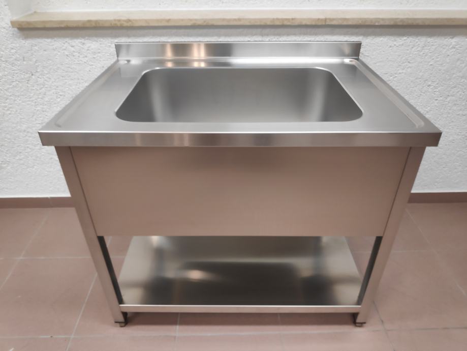 Sudoper sa 1 koritom, otvoreni, donja polica ojačana sa omega ojačanjem, veliko korito 700x500x350 mm, uzdignut rub 60/20 mm, vodeni rub oko korita, maska korita sa 3 strane, podešavajuće nogice, materijal: inox AISI 304, dim. 1000x700x900 mm