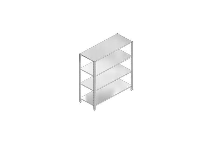 Stalaža sa 4 pune police, ojačana omega profilom za nosivost do 150 kg/polici, police podesive po visini, podešavajuće nogice, kutnici za sprečavanje, poporečnog gibanja,