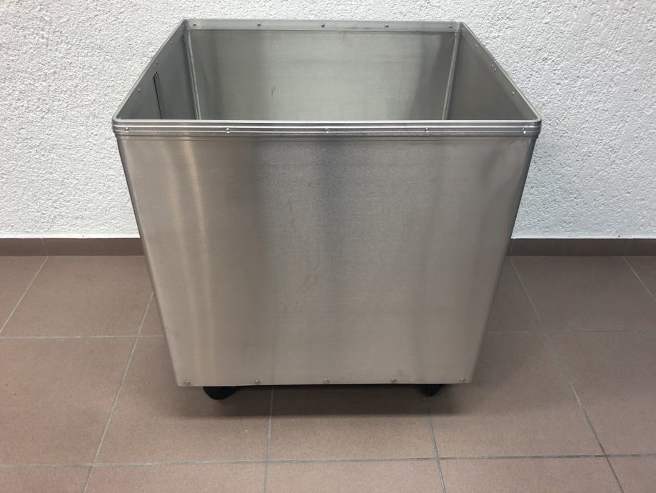 Alumijska kolica, izrađena iz anodiziranog alumnija, plastificirana, 4 okretna kotača 2 sa kočnicom, kotači sa pločicom, moguća zamjena, gornji rub i dno dodatno ojačano, dim. 700x600x600/750 mm