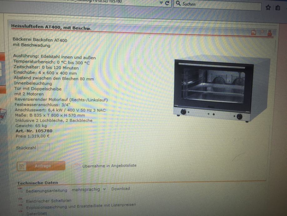 Prodajem pec na topli zrak Marke Bartscher Typ 883 Model 4400 PX