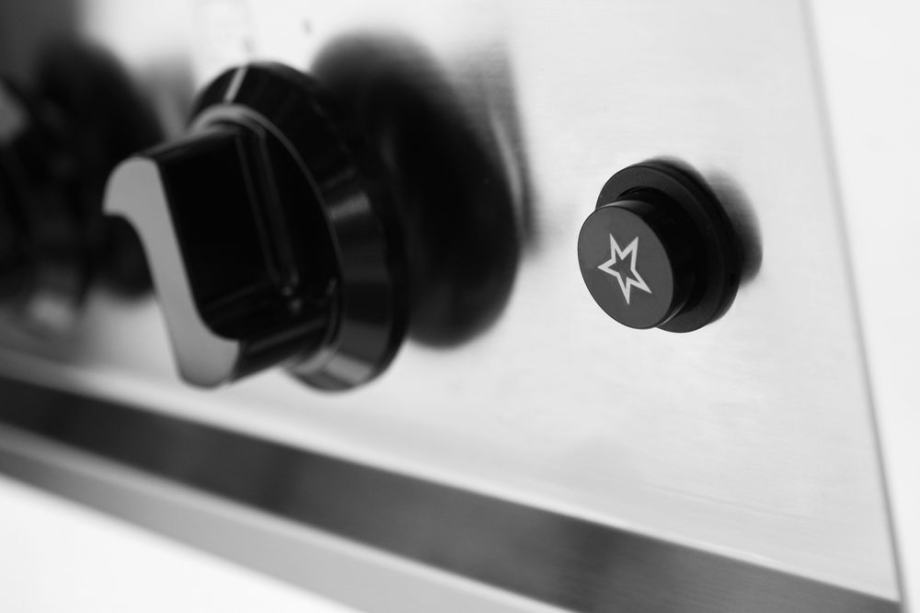 Plamenici su opremljeni termoelementom i piezo paljenjem. Trodijelni nosač posude od lijevanog željeza.