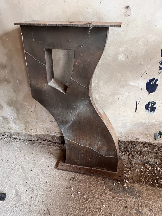 DIMENZIJE 70 CM ŠIRINA X 110 CM VISINA, HAND MADE POSTOLJE ZA VELIKI BARSKI STOL, PREDVIĐENA ZA UČVRŠĆIVANJE U POD, NAPRAVLJENA OD DEBELIH PLOČEVINA, POTREBNO PJESKARITI ILI PREFARBATI.