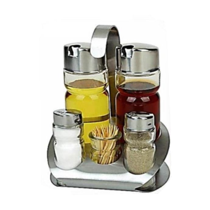 -kvalitetan inox set za serviranje ulja,octa,soli i papra na stolovima u ugostiteljstvu
