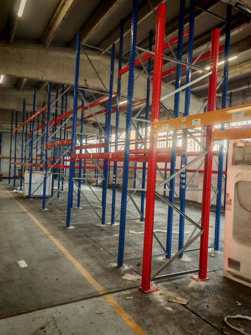 Skladišni regali za EU palete dimenzija 120x80cm, vrlo malo korišteni, kao novi. Sastoje se od 28 H elemenata 5700x1100mm, 122 poprečne grede i 28 štitnika. Posjeduju atest.