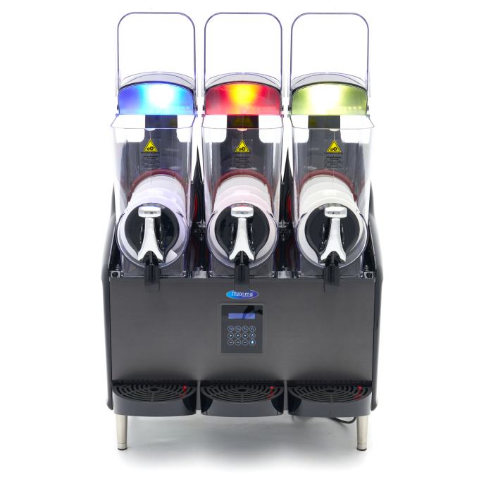 Ova profesionalna slush/granita mašina ima tri neovisna spremnika po 12 litara s vlastitim digitalnim upravljanjem. Svaki spremnik radi zasebno, pa možete istovremeno servirati tri različite okuse — granitu, voćne napitke, ledene koktele ili druge hladne napitke.