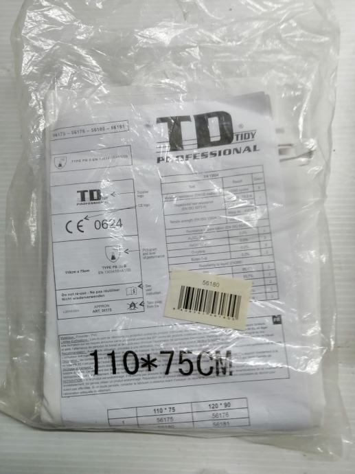 Bijela nepropusna kuharska pregača / kecelja 110 x 75cm (novo) 5€.