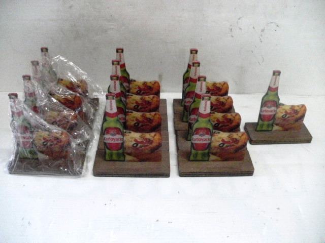 Stolni stalak, držač za cjenik, menu Karlovačko veličine cca 15,5cm X 7cm visok 18cm / 13kom (četri nova neraspakirana) 1€ kom, svi za 7€.