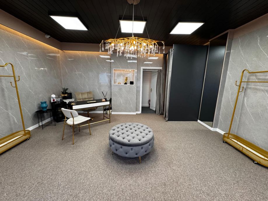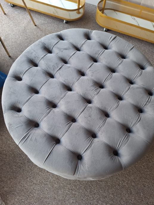 Luksuzni tabure sive boje kao nov, širina 90 cm visina 45 cm bio kratko vrijeme u butigu odječe.