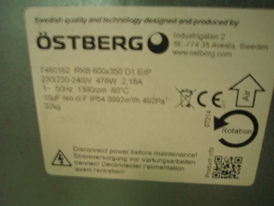 Kanalni ventilator sa rashlađivačem Ostberg rkb 600x350 D1