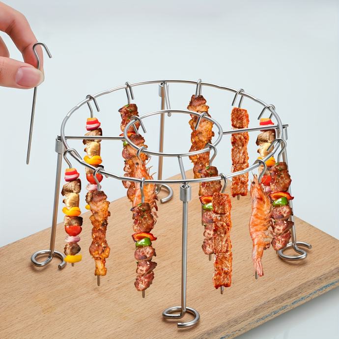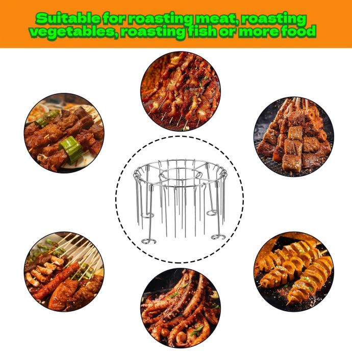 Vertikalni kružni roštilj od nehrđajućeg čelika s 24 ražnjića za ravnomjerno zagrijavanje raznih vrsta mesa i povrća, ne zagori lako, pogodan za pećnicu 3QT-6QT, neophodan za ljubitelje roštilja.