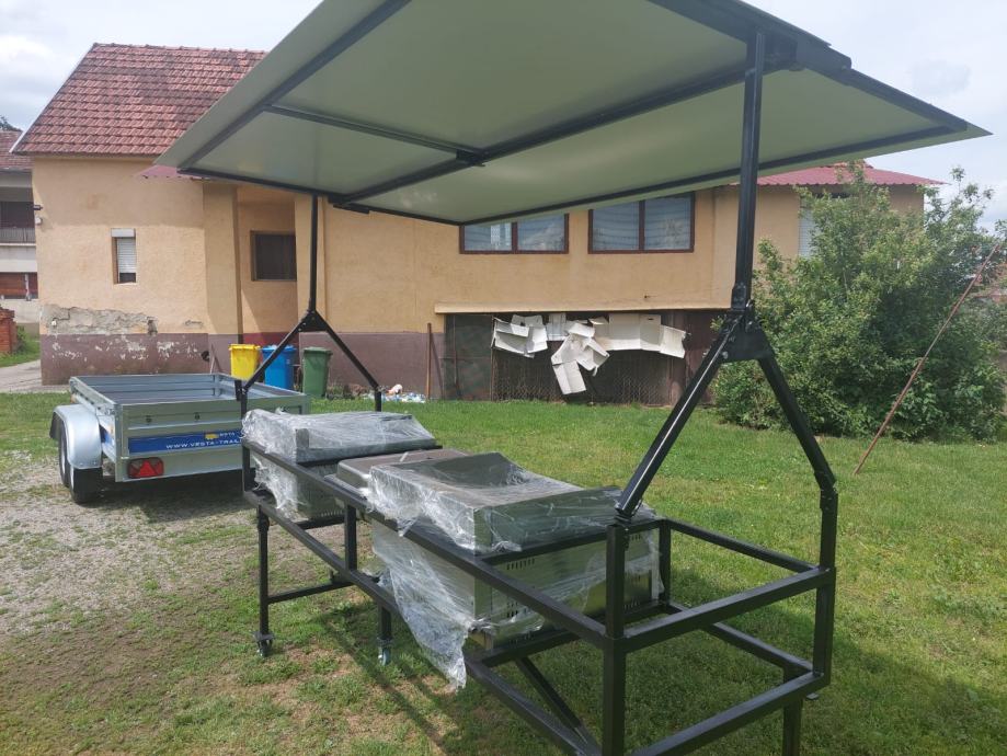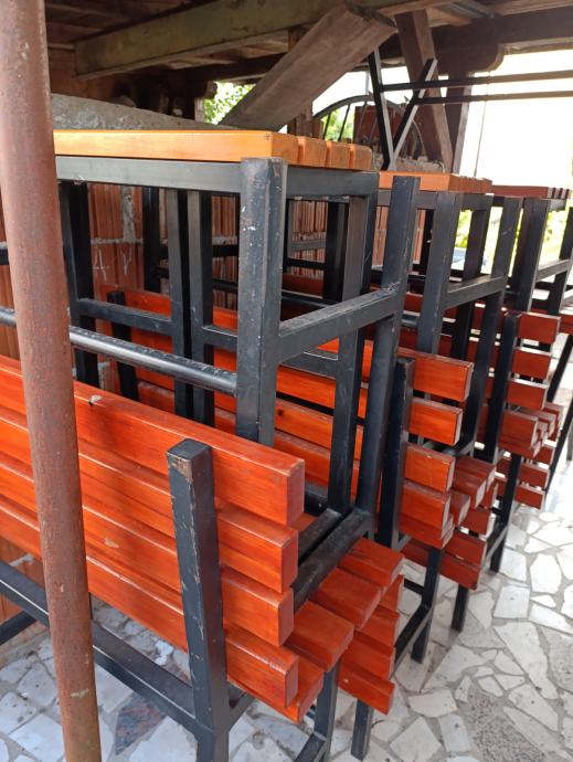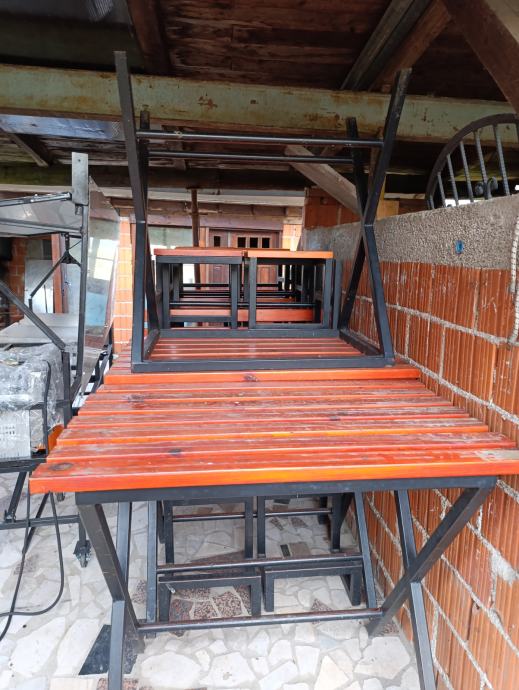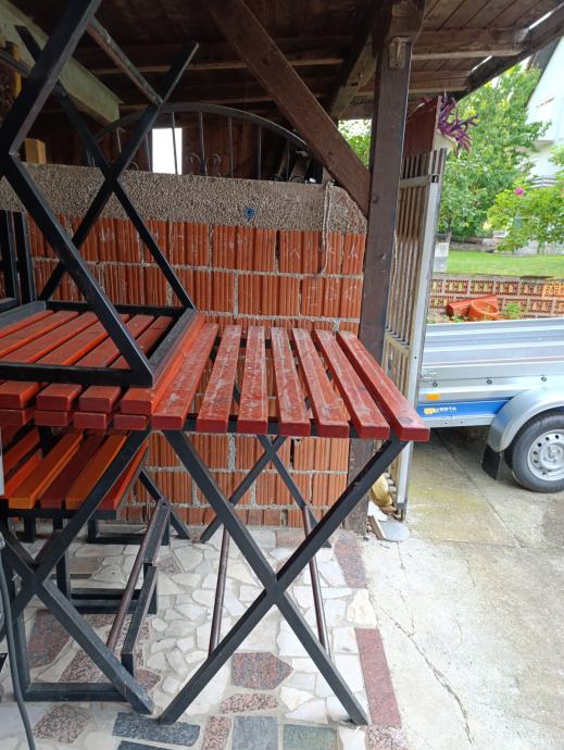 Set stolova za van sve u kompletu cena je kompletu ima tri visoka stola šest visokih klupa i barske stolice 8 ima i roštilj friteza plin postolje