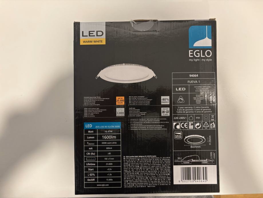 LED ugradbena svjetiljka/lampa EGLO Fueva 1 1600 lumena, 16,47W