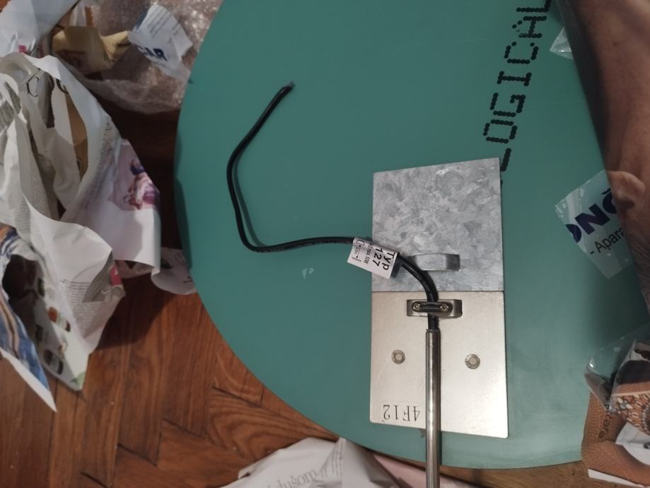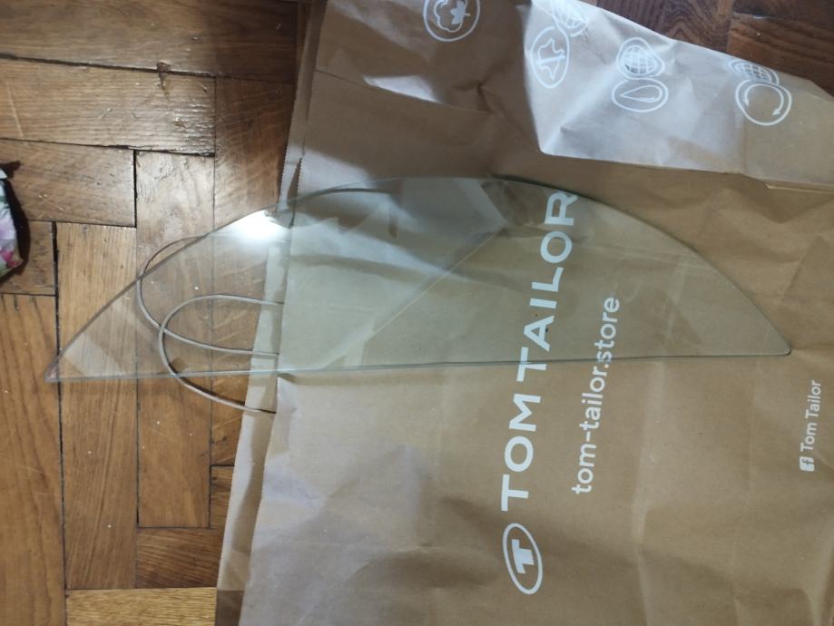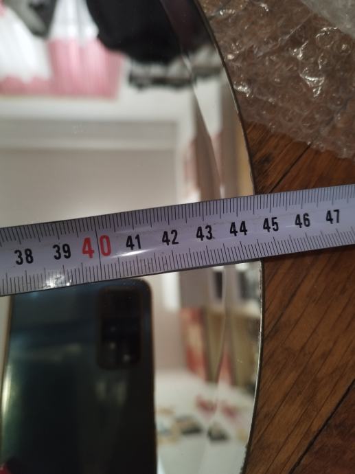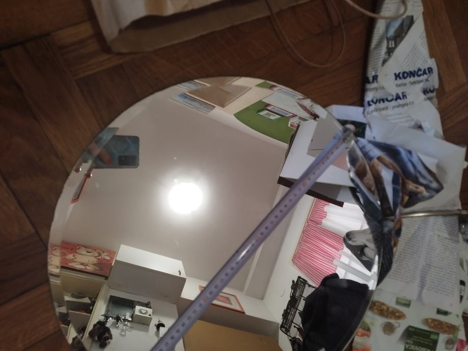 ∅ 45 cm i staklena polica kojoj je širina 15 na najširem dijelu koja se ušarafi u zid, svi djelovi su uz nju