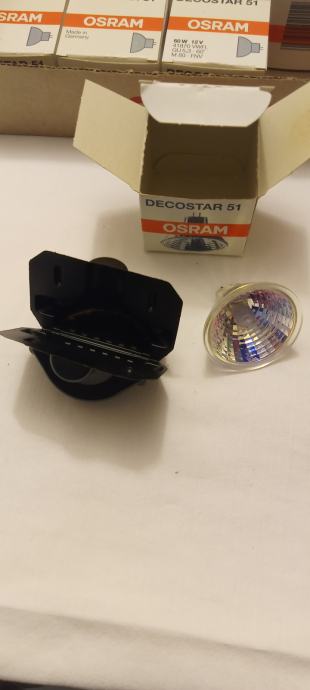 Ugradbena stropna svijetiljka (10 kom) sa Osram halogenom žaruljom napona 12 V i snage 50W, nove neraspakirane, bijele boje prodajem.