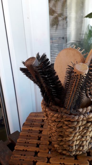 ČETIRI ČETKE ZA KOSU OD PRIRODNIH I PVC MATERIJALA, SVAKA ČETKA 39 KN, SVE ZAJEDNO 79,00 KN.