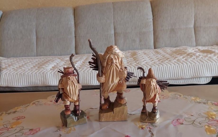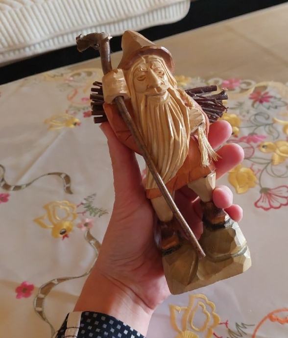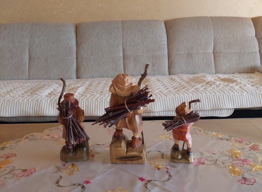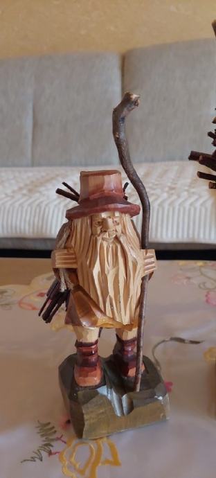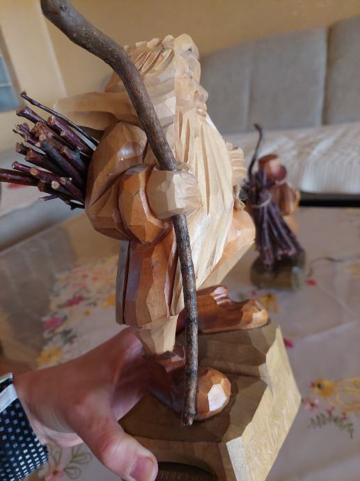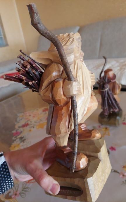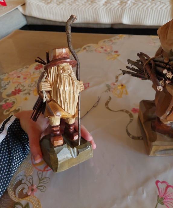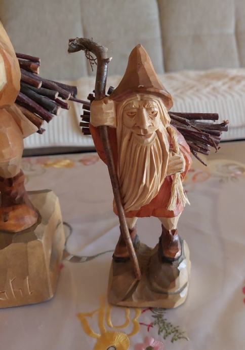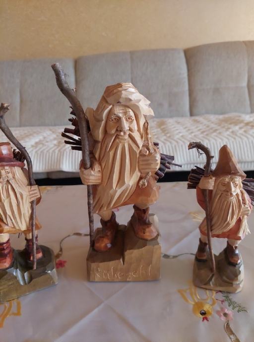 3 patuljka, 1 veliki I 2 srednje veličine. Napravljeni od drveta, rezbareni. Nose drva na leđima. Predivni detalji.