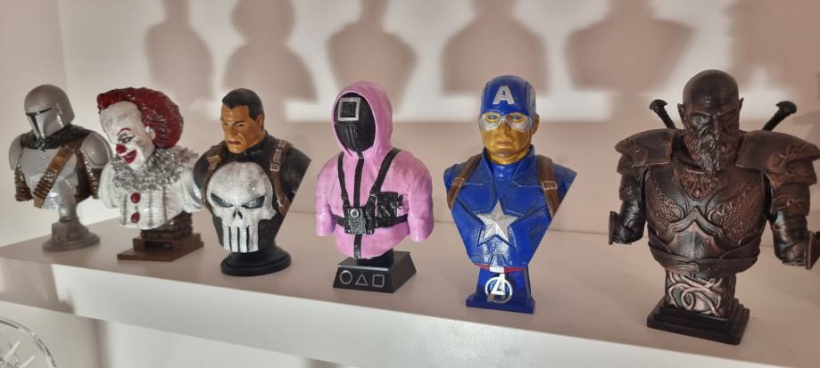 Prodajem 3d printane likove iz raznih područja kinematografije. Ručno bojani akrilnim bojama ili dry brush tehnikom.