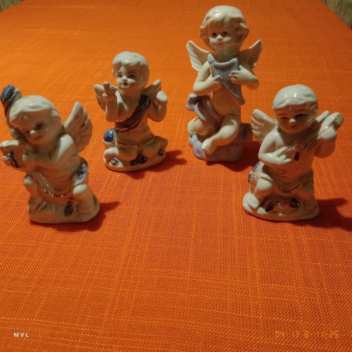 Porculanske figure anđela s pozlatom, 3 su visine 10 cm i širine 7 cm, a jedan visine 14 cm. i širine 8 cm. Cijena se odnosi na komad.