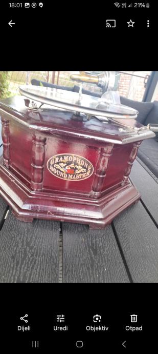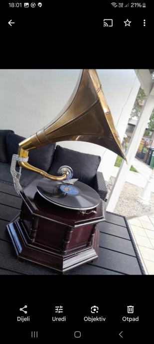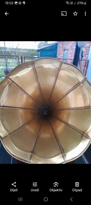 Figura bronca 3kg 33cm 200eur..gramofon mehanicki na navijanje drvo metal mesing radi 185eura