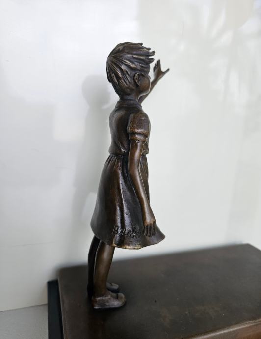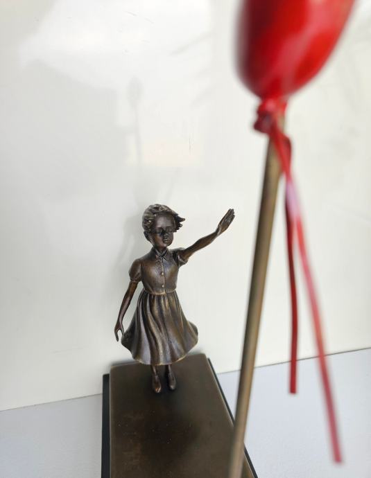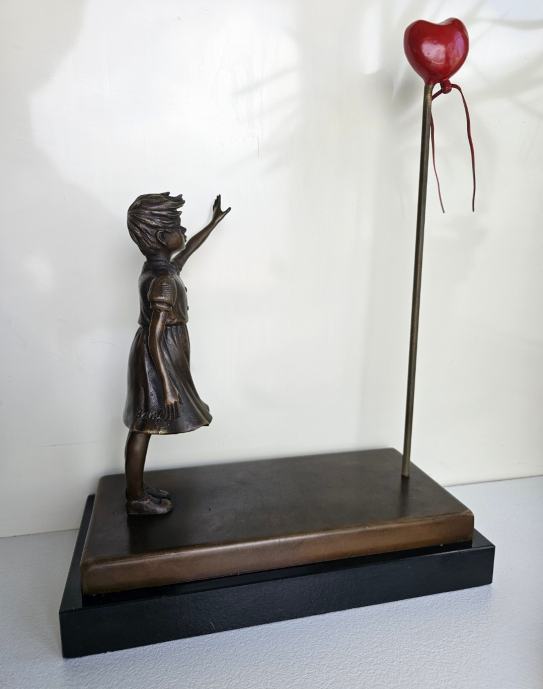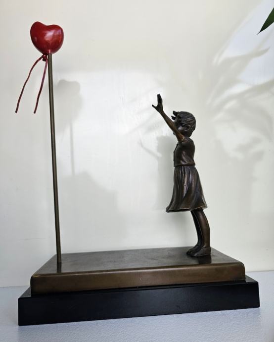 Brončana skulptura 'Djevojka s balonom' na mramoru autora Banksyja.