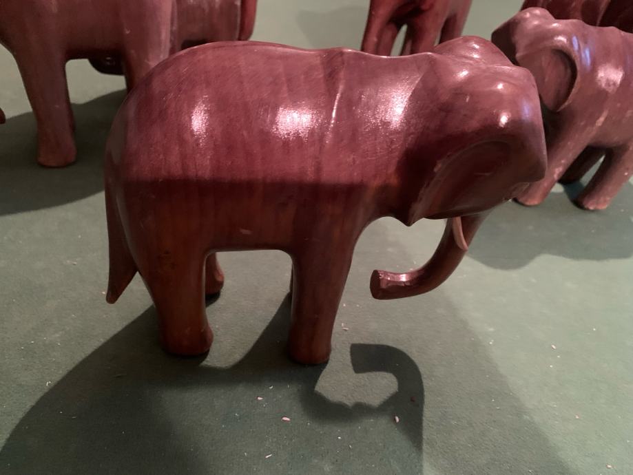 Predivni drveni slonovi, na jednom je ostala i cijena (139kn) u ono vrijeme, ja ih dajem svih 7 za 80€!!! Hitno!! Kontakt 0951705300
