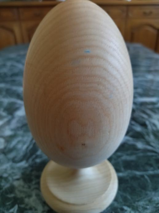 Veliko drveno jaje visine 21 cm. Cijena 6 eura.