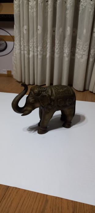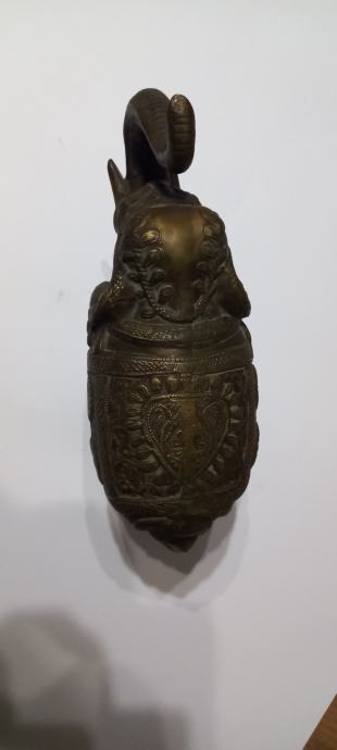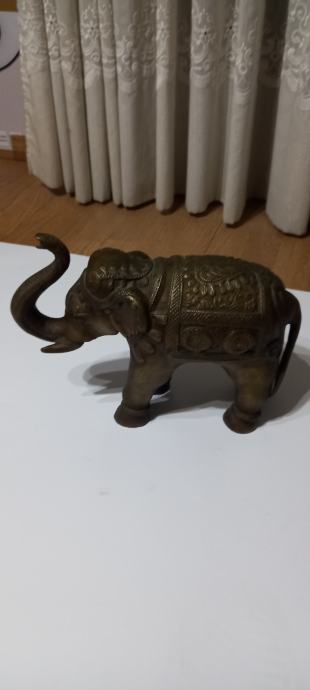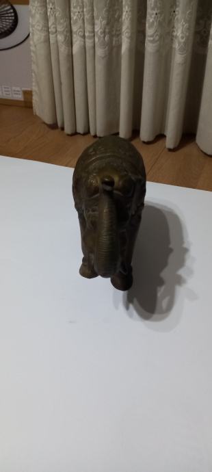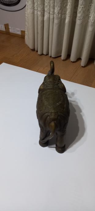 FIGURA SLONA OD MESINGA,LJEPO IZRAĐENA,TEŽINE 4.1 kg.,VISINA SURLE 24 cm.,LEĐA 20 c.,FIGURA JE ŠUPLJA,STARA OKO 40 god.,ODLIČNO SAČUVANA.