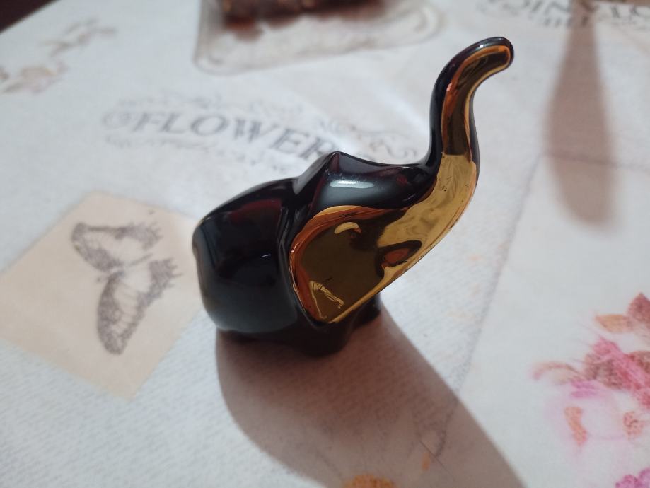 Dizajnerska keramicka figurica slonica ,crno zlato.