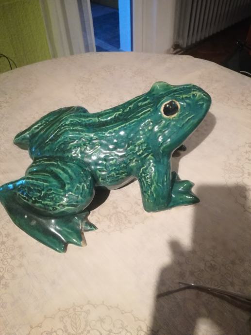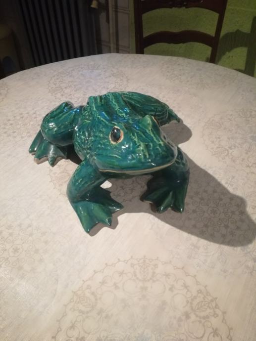 Velika žaba figura za neki.kutak vase kuce vrlo zanimljiva, velika je 40 cm, zadnji kraci su 34 cm, visina do brade 20 cm